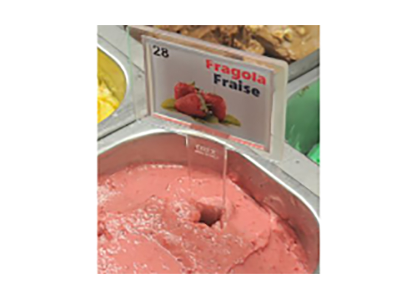 - Postolje za cene sa džepom za karticu sa nazivom sladoleda.